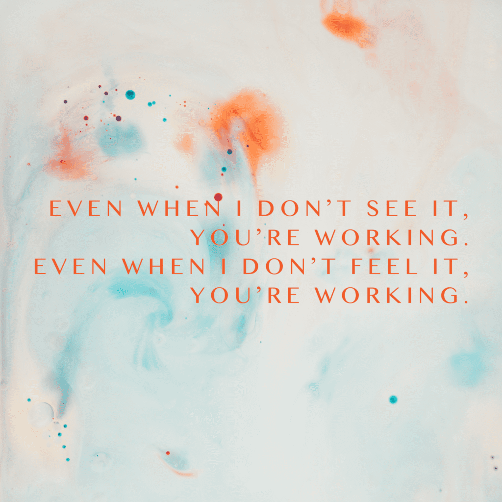 And that’s why I can say, “Even when I don’t see it, You’re working. Even when I can’t feel it, You’re working. You never stop, You never stop working.”